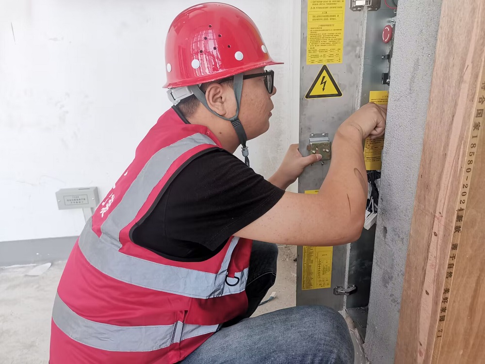 中國蚌埠傳感谷(寧波蚌埠微電子產(chǎn)業(yè)園)項目,技術(shù)員,鄭繼昊,正在檢查電梯控制柜操作系統。奮進(jìn)正當時(shí),我為祖國建設出力,以實(shí)際行動(dòng)建設精品工程。我在項目堅守,我為祖國慶生。
