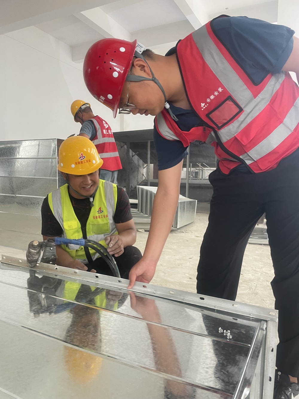 施工初期,編制責任成本階段,他組織專(zhuān)人專(zhuān)班研究擬定實(shí)施性施工組織設計。三個(gè)基地項目的防排煙風(fēng)管施工面臨著(zhù)工藝復雜,施工成本較高,且成型觀(guān)感較差的問(wèn)題。他通過(guò)現場(chǎng)與監理、業(yè)主的溝通把防排煙風(fēng)管改成鋼面鎂質(zhì)復合風(fēng)管。此種風(fēng)管不僅符合新規中對于風(fēng)管耐火性、隔熱性及完整性的要求而且兼具了美觀(guān)、輕體及安裝便捷等優(yōu)勢。此變更預計可為項目節省30萬(wàn)元。