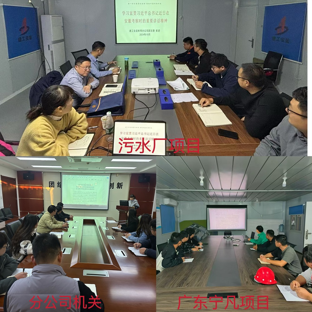 近日,建工安裝蚌埠分公司團支部分別在機關(guān)、在建項目,組織傳達學(xué)習習近平總書(shū)記考察安徽重要講話(huà)精神,分公司機關(guān)青年團員、各在建項目員工參會(huì )。