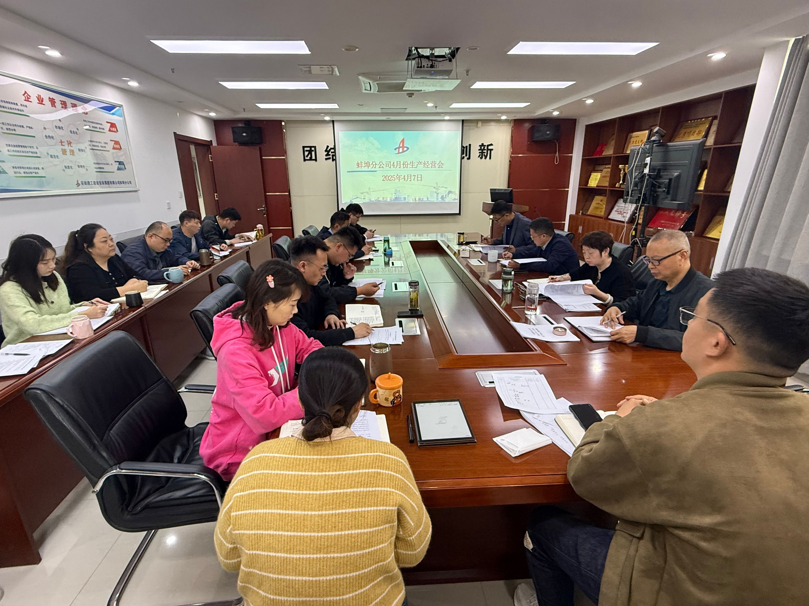 4月7日上午,蚌埠分公司組織召開(kāi)4月份生產(chǎn)經(jīng)營(yíng)調度會(huì ),分公司領(lǐng)導班子成員、所屬各項目部、機關(guān)各部門(mén)負責人及工程管理部全體員工參加會(huì )議。會(huì )議由分公司副經(jīng)理張斌主持。
