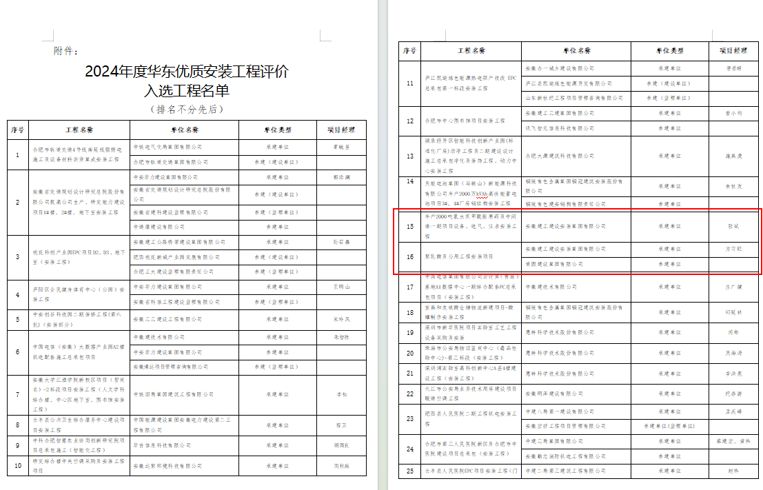 喜報!建工安裝蚌埠分公司承建的輝隆項目入選2024年度“華東優(yōu)質(zhì)安裝工程”